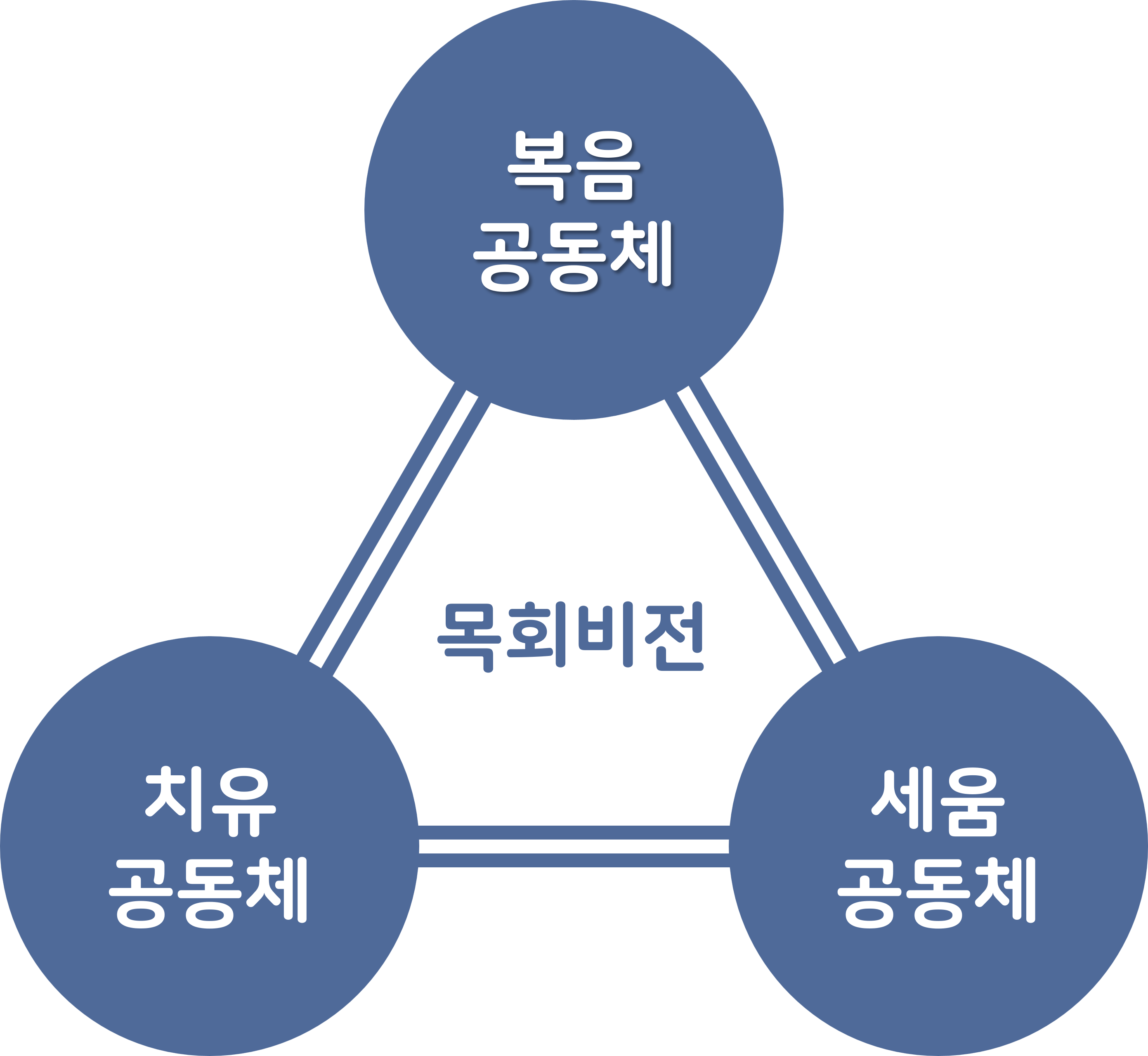 성경대로 우리 죄를 위해 죽으시고, 성경대로 부활하신 예수님을 통해, 스스로 주인되어 살았던 죄를 회개하고 “예수를 나의 주(主)”로 영접하여, 주님과 동행의 삶을 사는 복음공동체